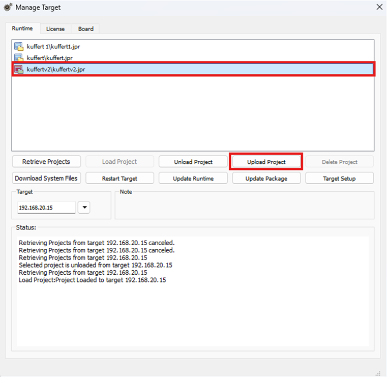 1. Select the project that you want to unload/backup. The already loaded project is marked with red.